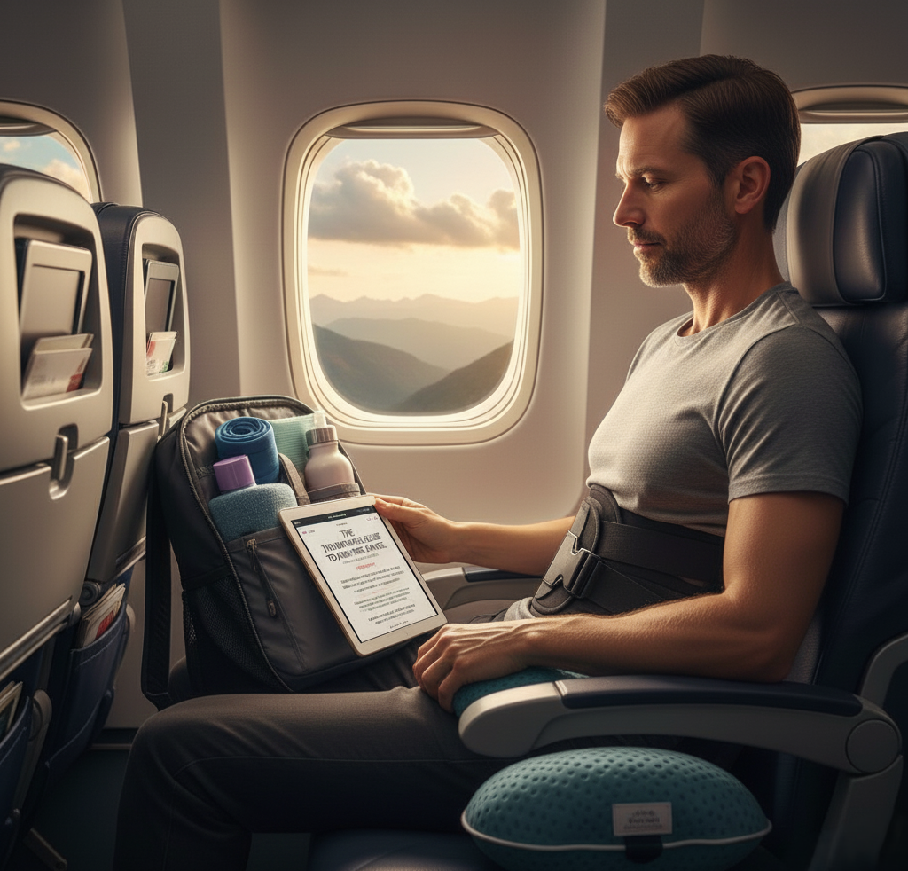 Tips to manage and prevent back pain while traveling, including posture advice and supportive gear.